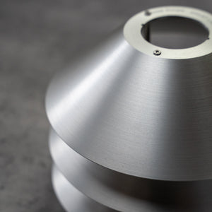 Constructed from aluminum. Rather than relying on mass-production spinning processes, every component is fully CNC-machined. Edges controlled to a precision of 0.1 mm define the clarity of light, while the anodized finish protects the surface and offers a refined touch.