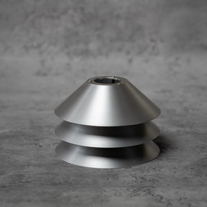 素材はアルミニウム。 量 産向けの旋圧加工を用いず、すべてのパーツを CNC による総削り出しで成形しています。 0.1mm単位で制御されたエッジの精度が、光の輪郭を明確にします。