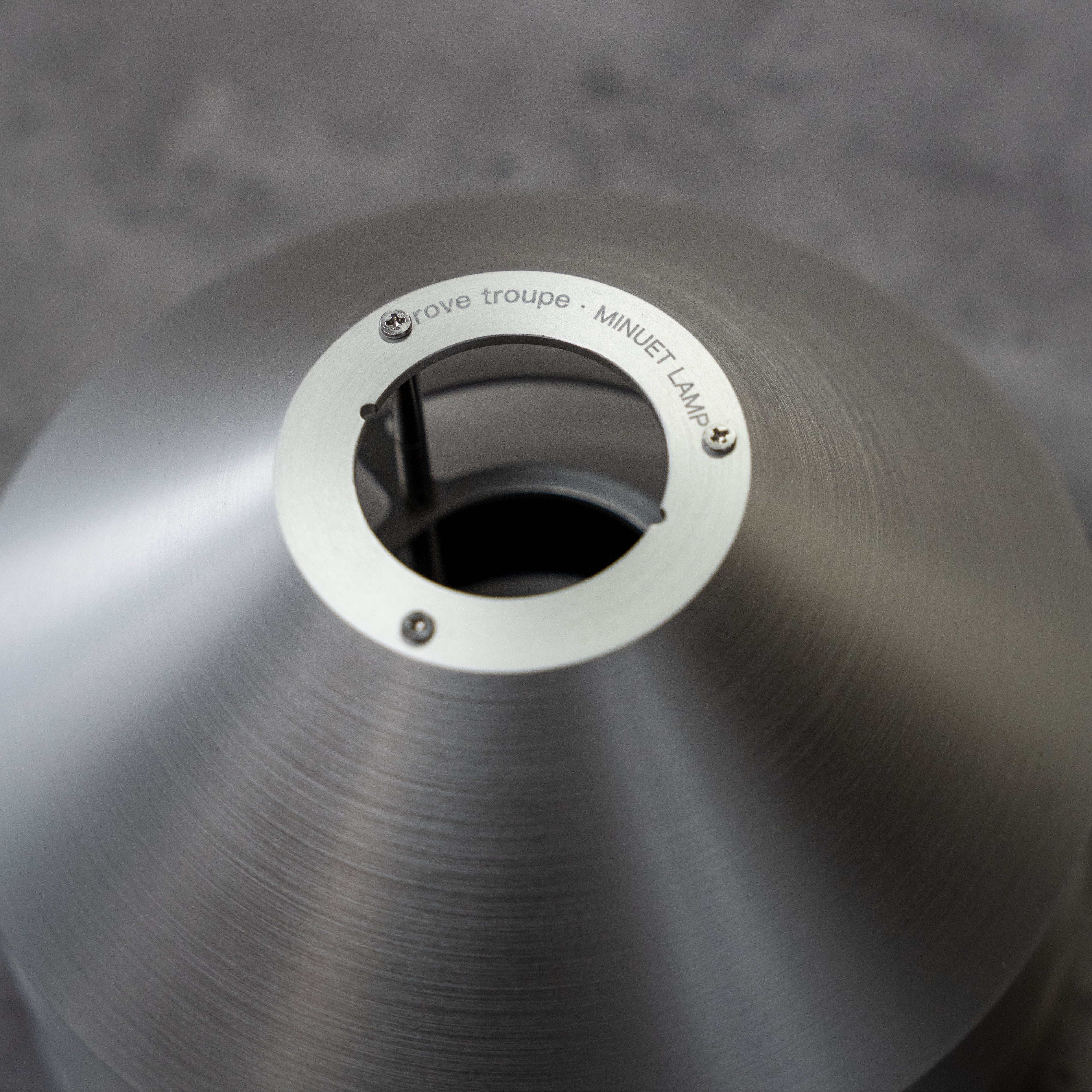 名称は、クラシックの舞曲「メヌエット」に由来しています。 リズムと均衡、そして静かな美しさ。 その構成を、光と構造に置き換えることから Minuet Lamp は始まりました。 三層のシェードは、それぞれ形状と高さをわずかに変えて設計されています。 光は遮られ、反射し、拡散と収束を繰り返しながら、 空間を柔らかく包み込みます。